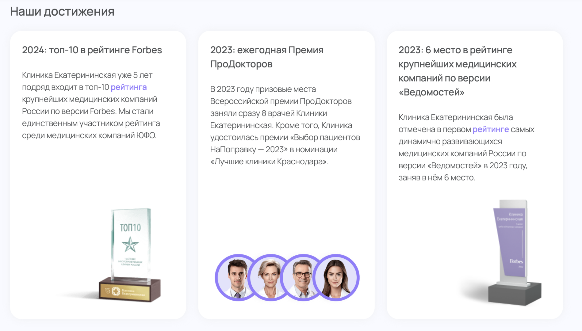 Клиника Екатерининская — частная медицинская сеть №1 в ЮФО*, которая входит в топ-10 крупнейших частных медицинских компаний России по версии Forbes (2024)