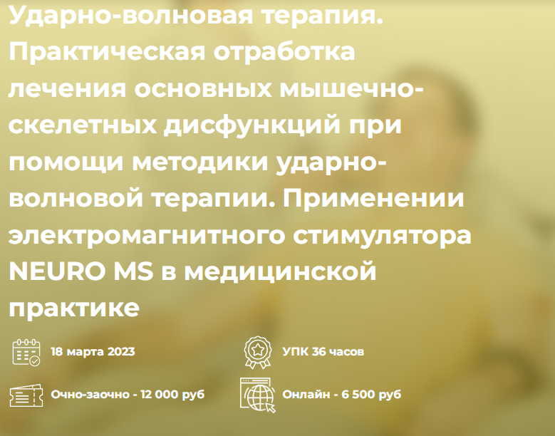 Ударно-волновая терапия. Практическая отработка лечения основных мышечно-скелетных дисфункций при помощи методики ударно-волновой терапии. Применении электромагнитного стимулятора NEURO MS в медицинской практике