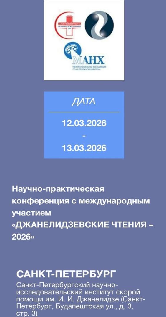 Научно-практическая конференция с международным участием «ДЖАНЕЛИДЗЕВСКИЕ ЧТЕНИЯ – 2026»